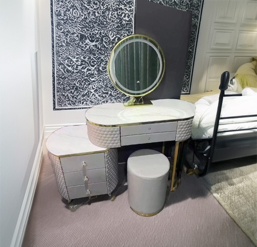 A dressing table and stool set is a stylish and functional modern piece of furniture for your home.